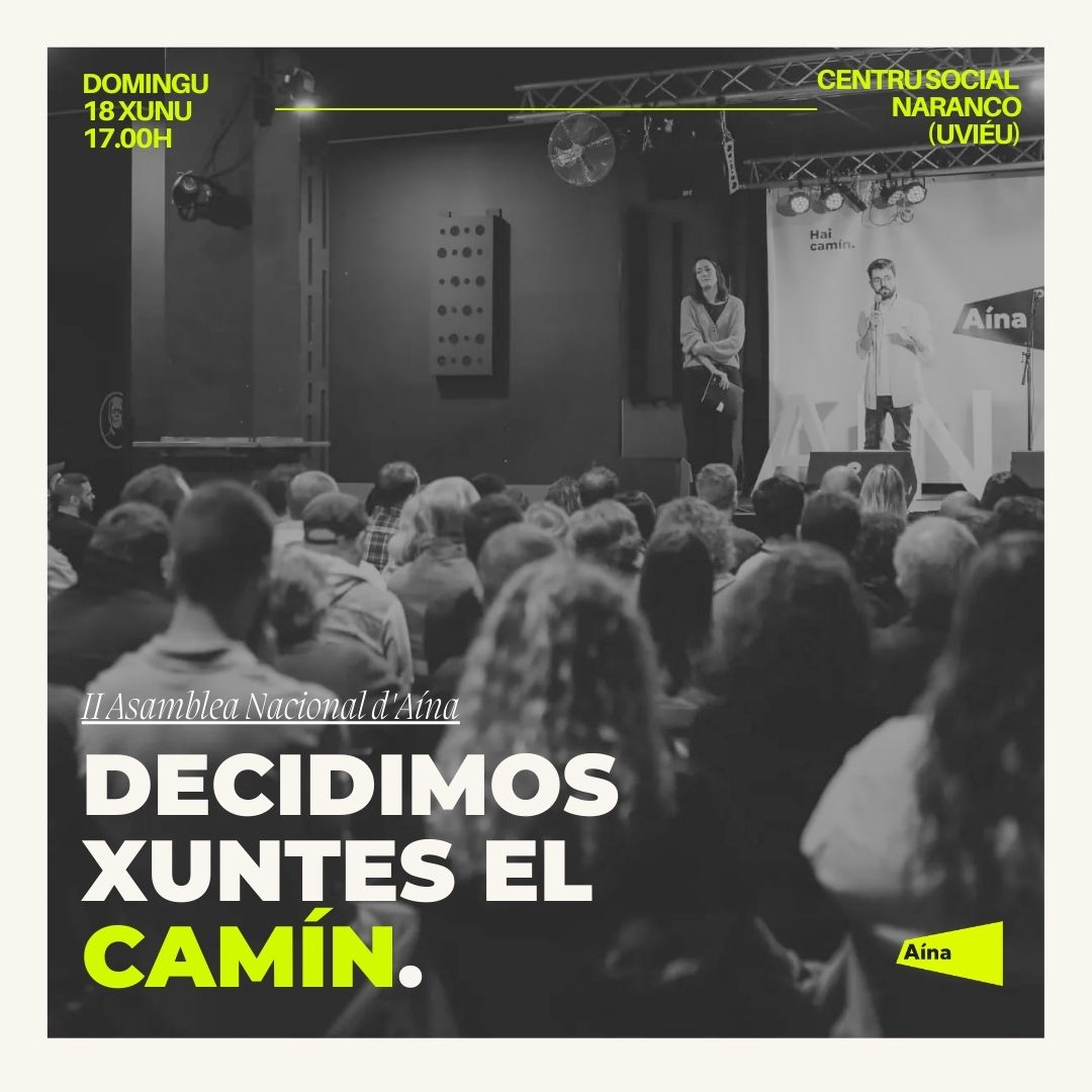 Agora, tres l’anuncia de la convocatoria eleutoral del 23 de xunetu, Aína vuelve a llamar a la so militancia a garrar la pallabra y decidir. El partíu asturianista va celebrar esti domingu 18 de xunu, a les 17:00 nel Centru Social Naranco d’Uviéu, una Asamblea Nacional Estraordinaria na que van poder participar toles persones afiliaes. Nesta Asamblea, convocada cola urxencia que rique la situación política, tien como oxetivu decidir si Aína tien de participar nesti procesu eleutoral.