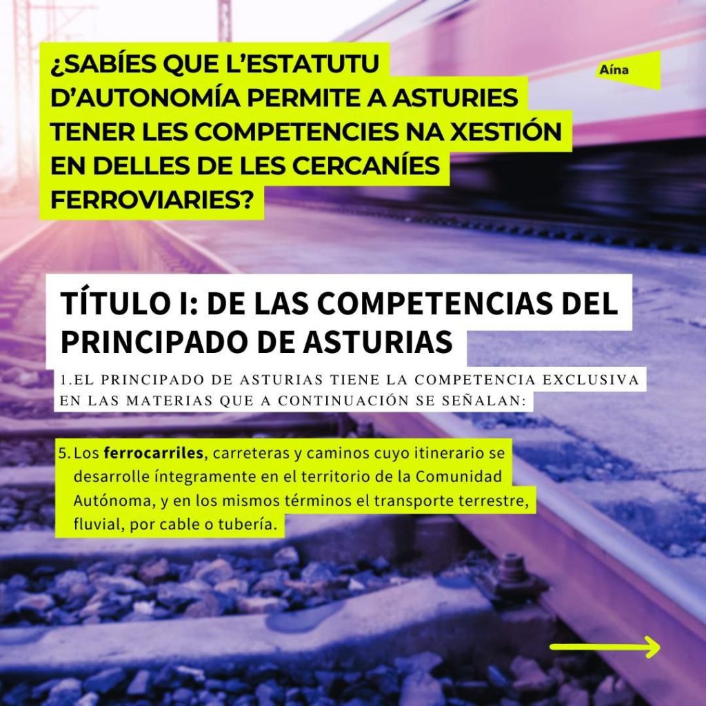 Poro, Aína tienlo claro: asumir toles competencies que permita l’Estatutu, ente elles parte de les cercaníes de tren, integrar progresivamente tola rede y una xestión directa dende Asturies con una financiación afechisca pa dotar de derechos a la población.